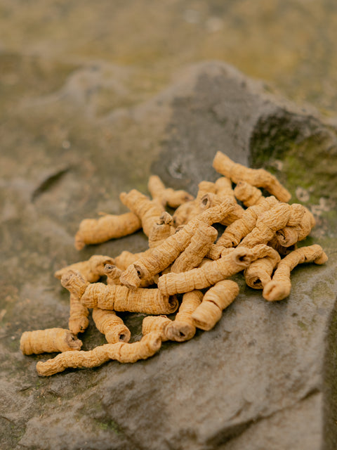Found predominantly in humid, Asian regions, this 'tree of life mushroom' superfood typically grows on the trunks of aging trees. With its distinctive glossy, reddish-brown cap and woody texture, Reishi is not only a staple in herbal medicine but also used as a superfood and prized as a cultural symbol of healing and longevity.